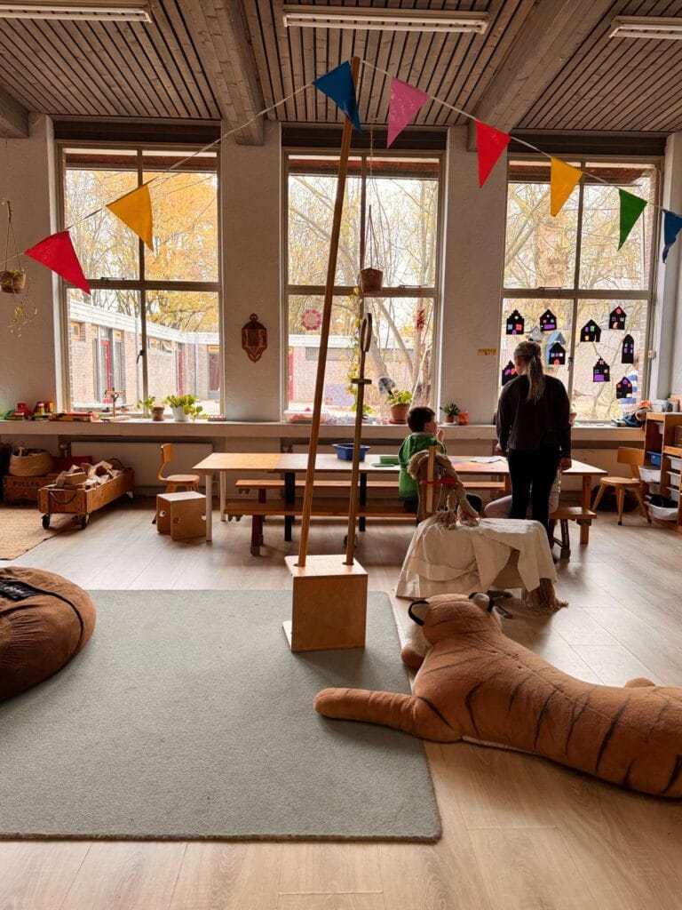 Herkes, okulun bütünü içinde kendi yapısını tasarlıyor. Biz iki odayı yaş grubuna göre düzenledik: 4–5 yaş için bir oyun odası, 6–9 yaş için bir keşif odası var.