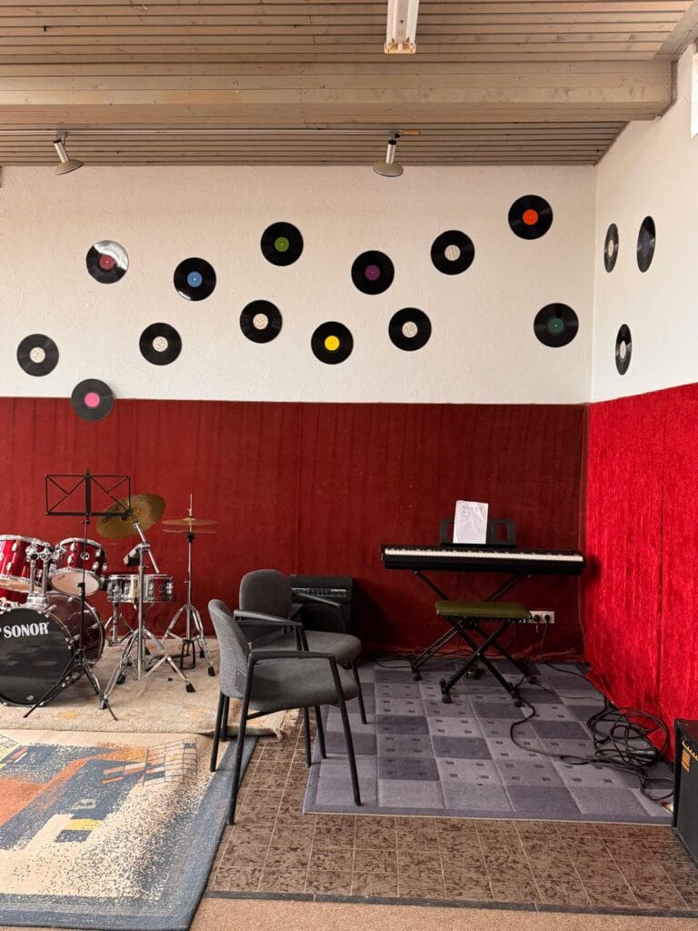 Daha ilk dakikada şaşkınlık başladı. Tiyatro salonunda, sahnenin bir köşesine kurulmuş bir DJ kabini ve orada müzik yapan bir öğrenci… Kimsenin “Ders var, bunu sonra yap” demediği, çocuğun özgürce deneme yapabildiği bir alan.
