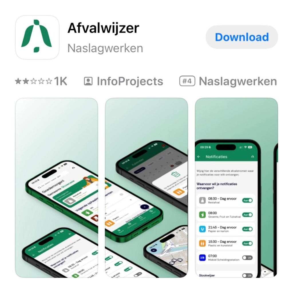 “Afvalwijzer” veya bazı bölgelerde “Mijn Afvalwijzer” uygulaması sayesinde bulunduğunuz adrese en yakın kledinginzameling kutularını kolayca bulabiliyorsunuz.